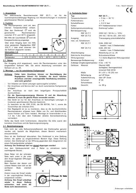 Roth Raumthermostat Handbuch & Bedienungsanleitung als PDF (Deutsch)